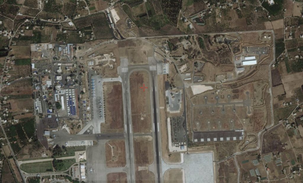Skipping to page 47, we find the briefing for this contract and, on page 48, is the instructions to find the password. You are given the satellite image for an air base. Your goal is to find the name and location of the air base. Once you have found the base, you will need to find the country, governate, and district. The “Flag Format” section gives you instructions on how you should format the information to obtain the password for the flag file. If you open the image, you will see the following satellite image.