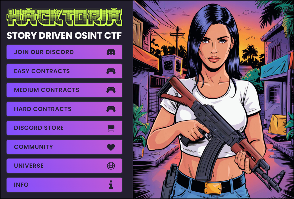 I was recently introduced to a really cool website for OSINT, hacktoria.com. Hacktoria is a self-proclaimed story driven OSINT CTF. When you visit hacktoria.com, you will be taken to the page shown above. From here, you can choose the difficulty level for the CTF “contract” you’d like to do. You are playing as Special Agent K of SERPENT, an secret espionage/spy made up of people from several different countries, all working together to find smugglers, arms dealers, and (I’m sure) a ton more.