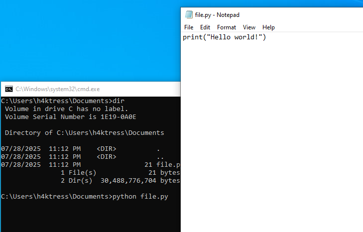 If you don’t like any of those options, you can use any text editor of your choice. You will need to create a folder for your files and save the document with the .py extension. To run your scripts, you will need to open a terminal or command prompt in the same folder as your script. To run your script, simply type: